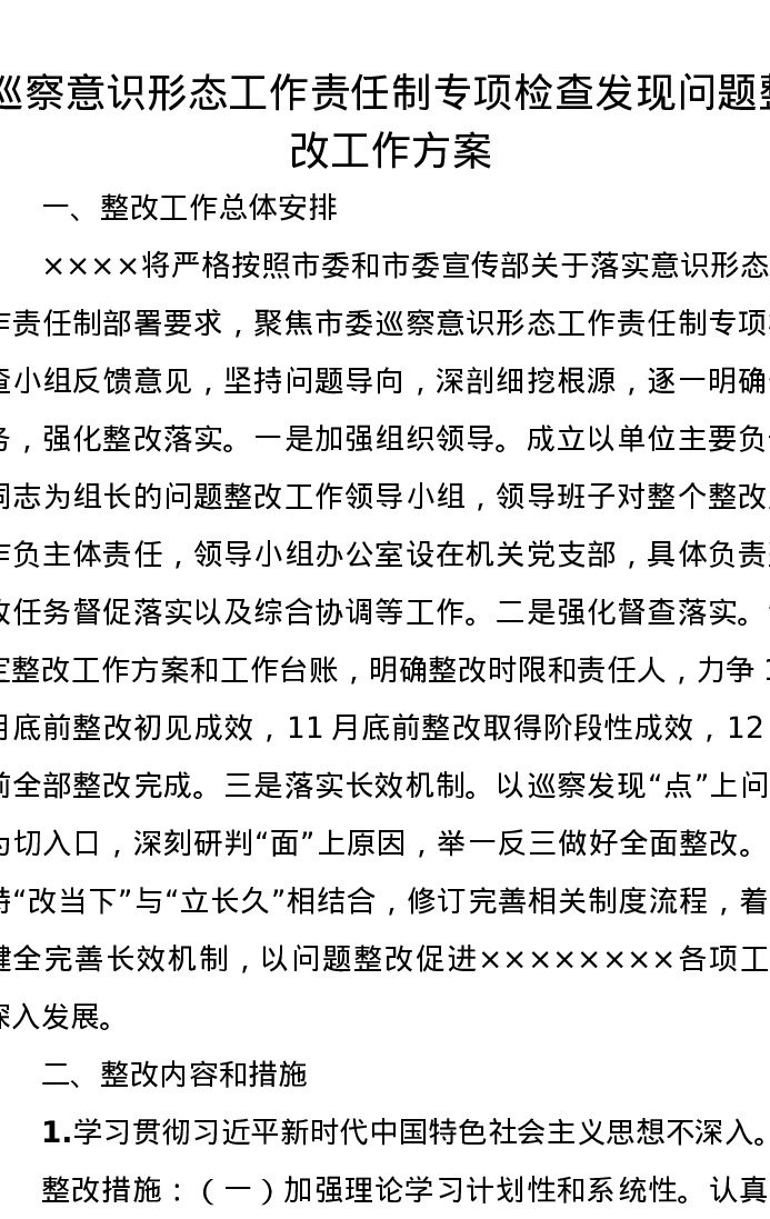 巡察意识形态工作责任制专项检查发现问题整改工作方案