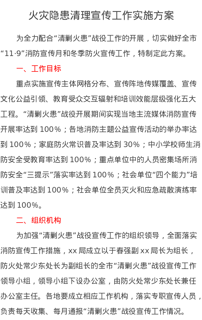 火灾隐患清理宣传工作实施方案