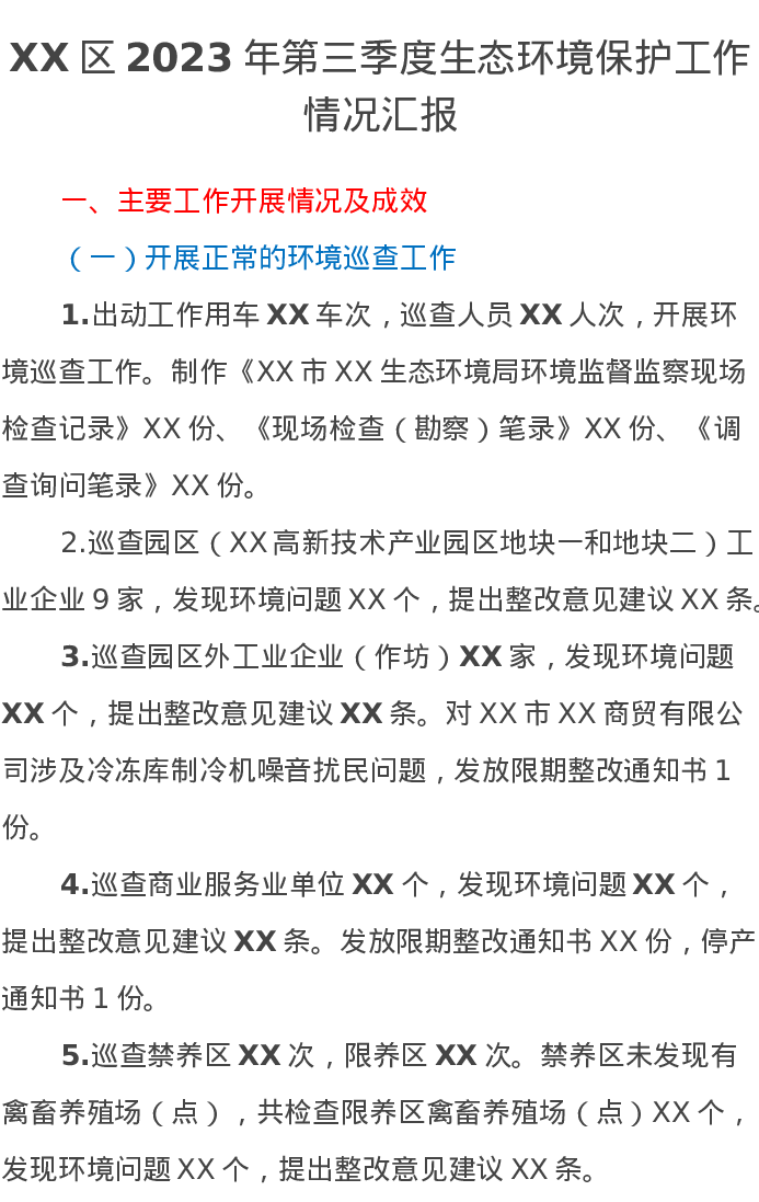 XX区2023年第三季度生态环境保护工作情况汇报