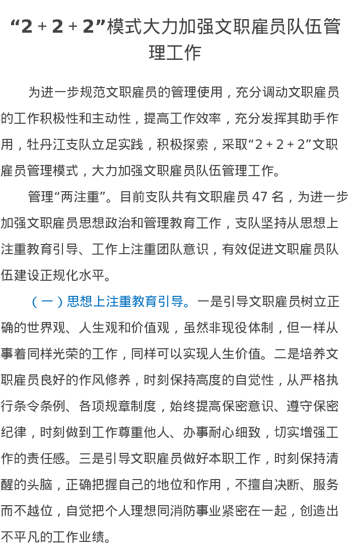 “2+2+2”模式大力加强文职雇员队伍管理工作汇报