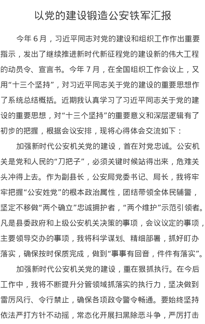 以党的建设锻造公安铁军汇报