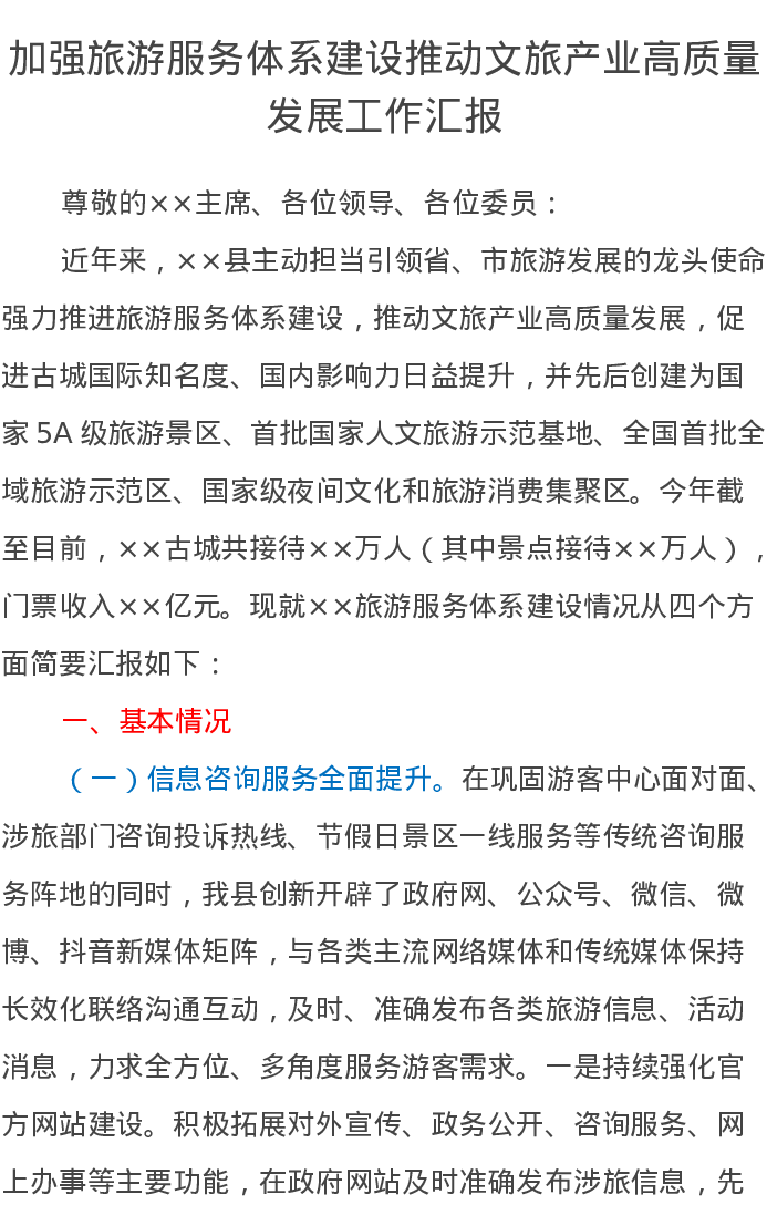 加强旅游服务体系建设推动文旅产业高质量发展工作汇报