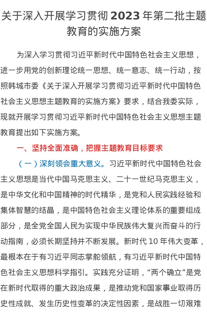 关于深入开展学习贯彻2023年第二批主题教育的实施方案(特色社会主义思想)