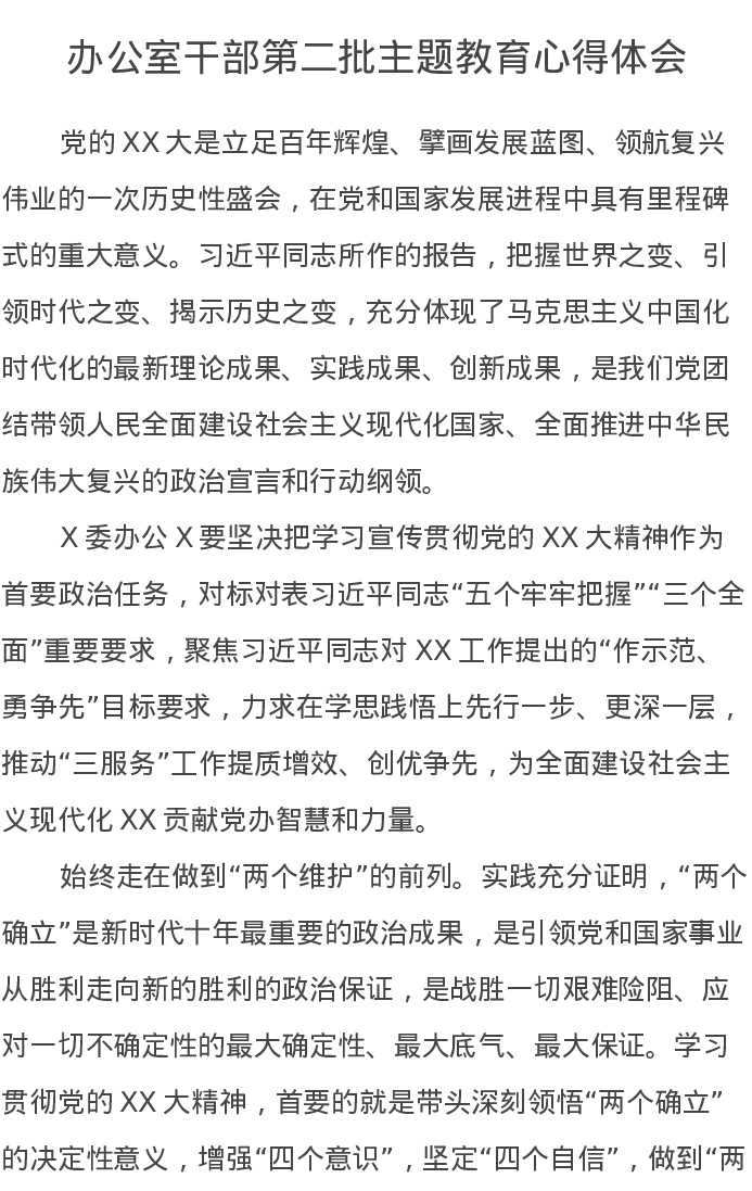 办公室干部第二批主题教育心得体会(特色社会主义思想)