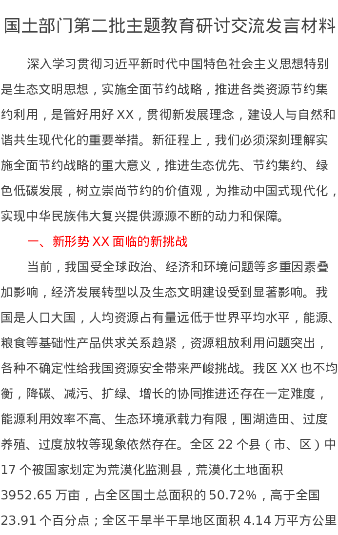 国土部门第二批主题教育研讨交流发言材料3(特色社会主义思想)