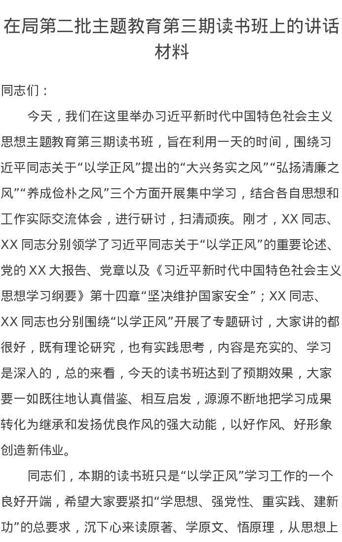 在局第二批主题教育第三期读书班上的讲话材料(特色社会主义思想)