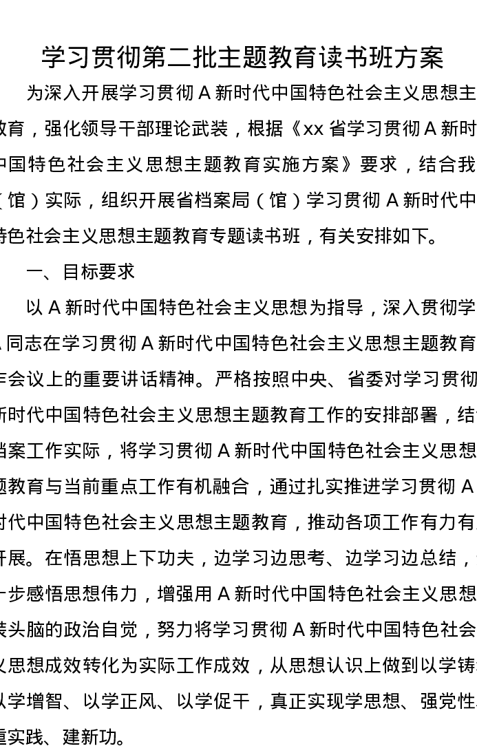 学习贯彻第二批主题教育读书班方案(特色社会主义思想)