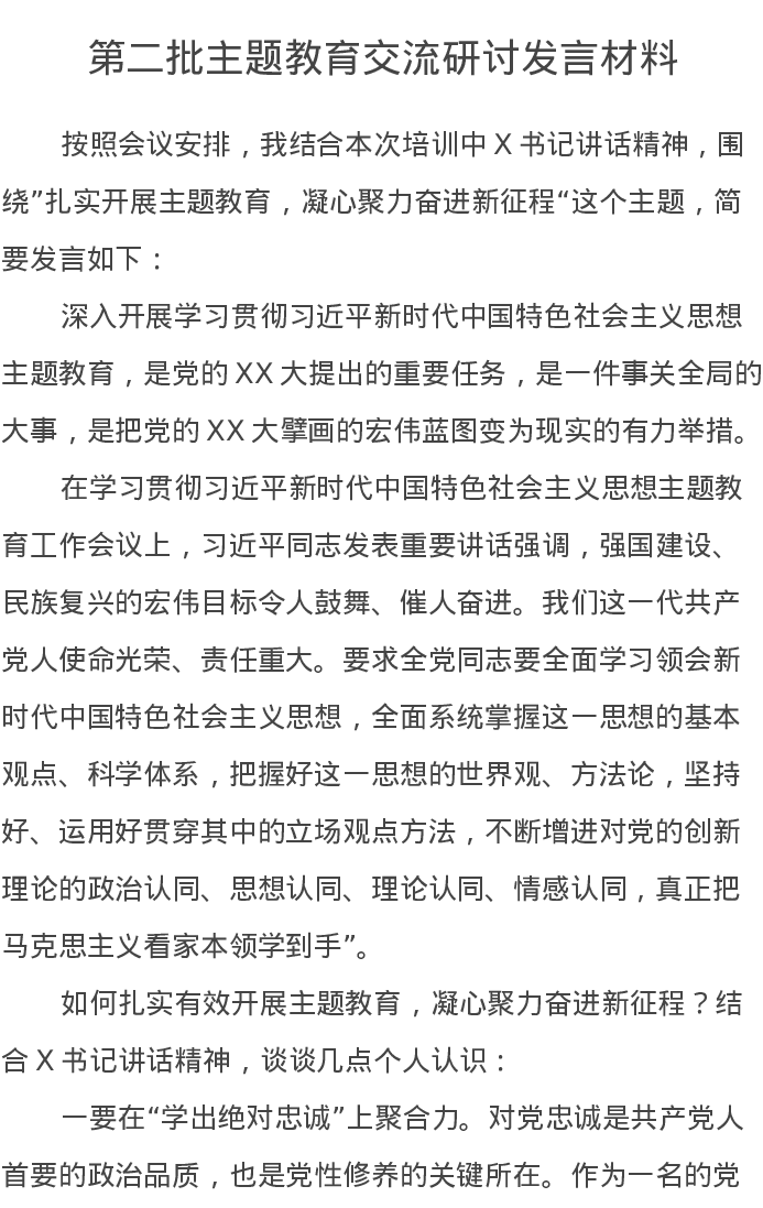 第二批主题教育交流研讨发言材料(特色社会主义思想)