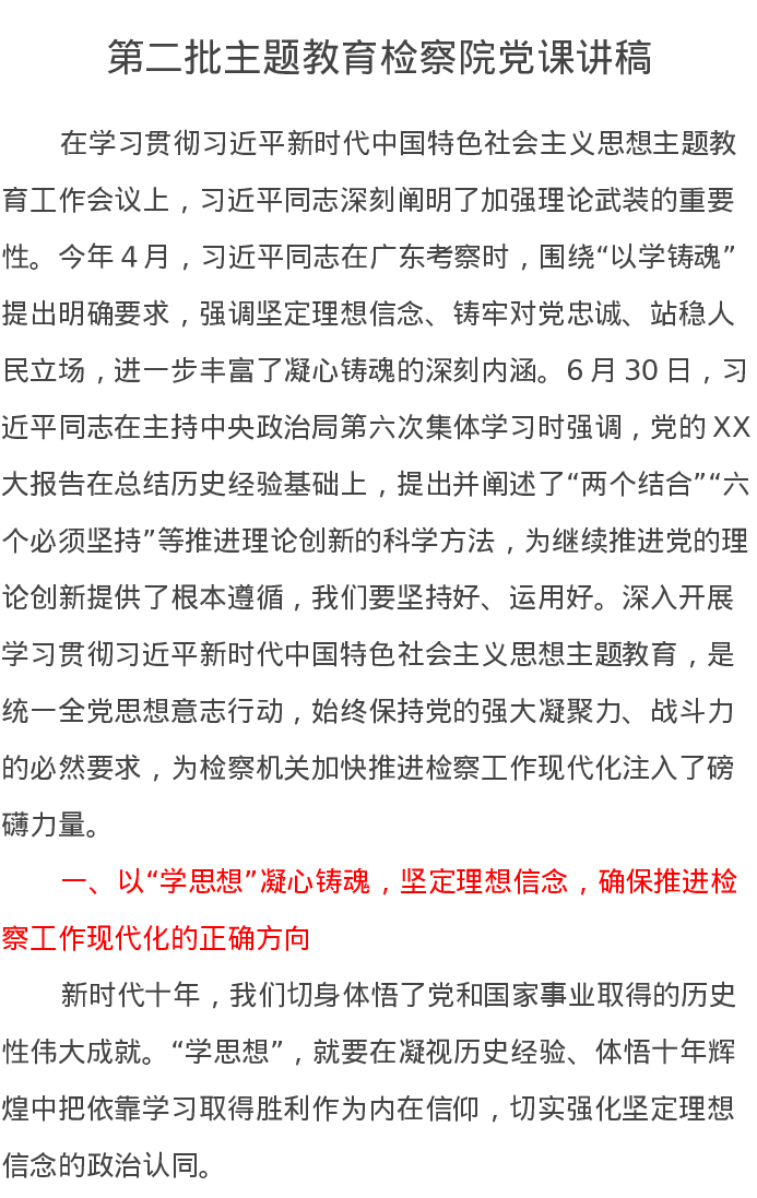 第二批主题教育检察院党课讲稿(特色社会主义思想)