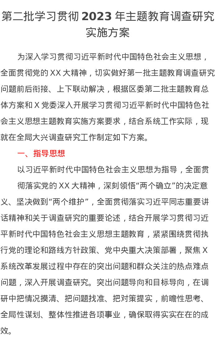 第二批学习贯彻2023年第二批主题教育调查研究实施方案(特色社会主义思想)