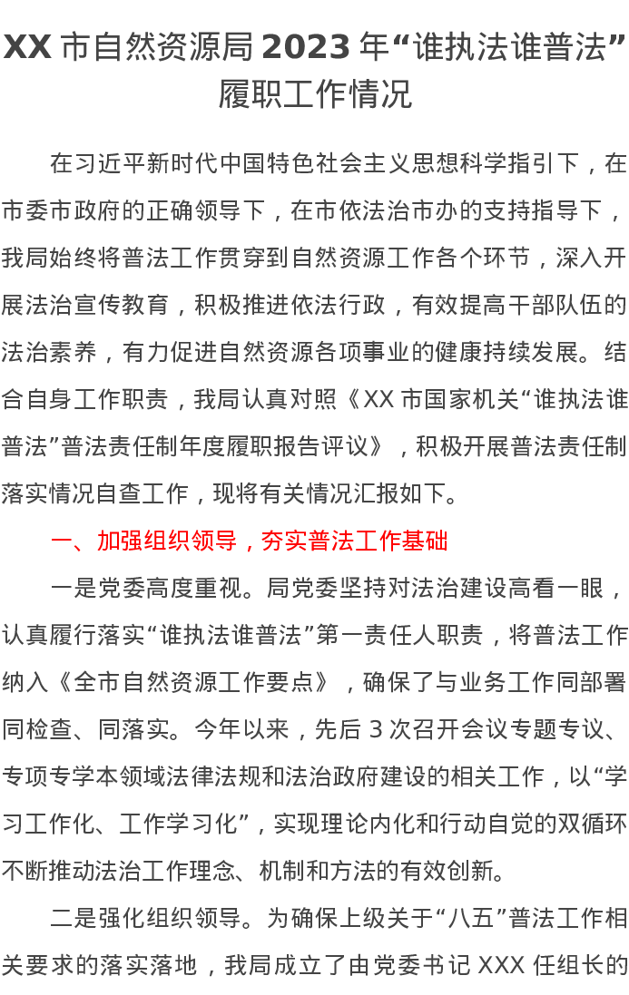 XX市自然资源局2023年“谁执法谁普法”履职工作情况报告