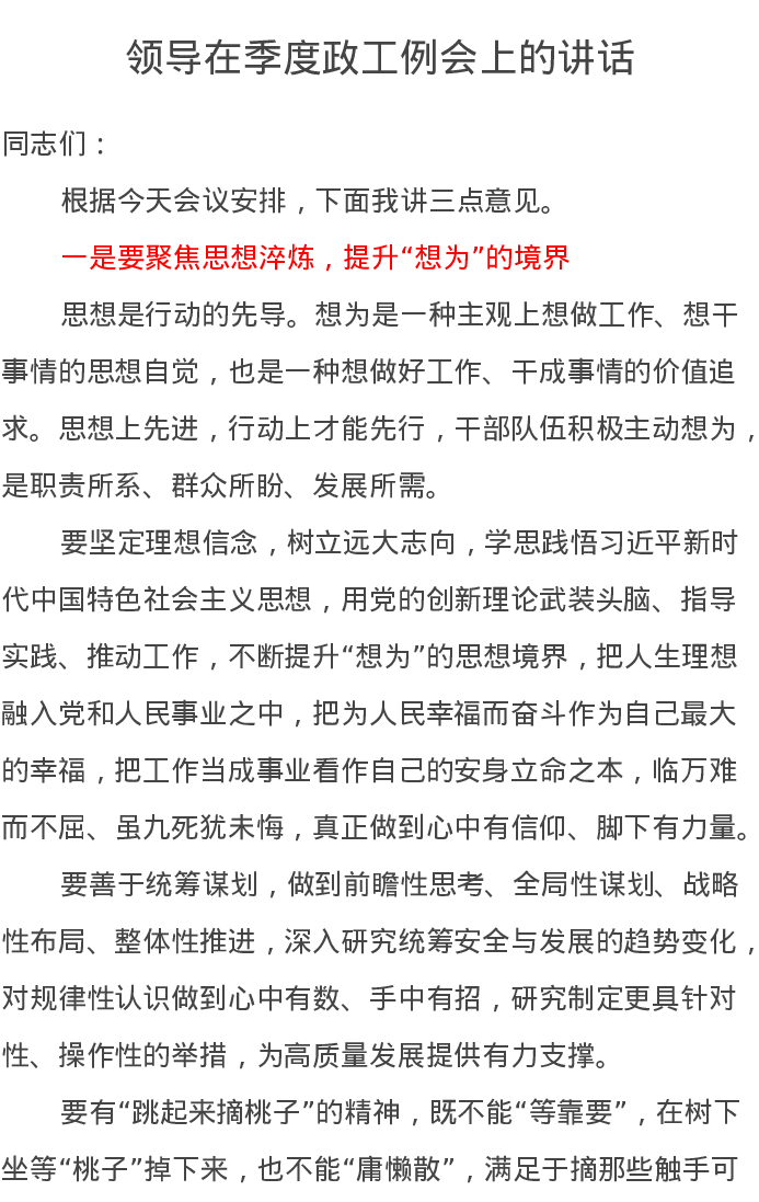 领导在季度政工例会上的讲话