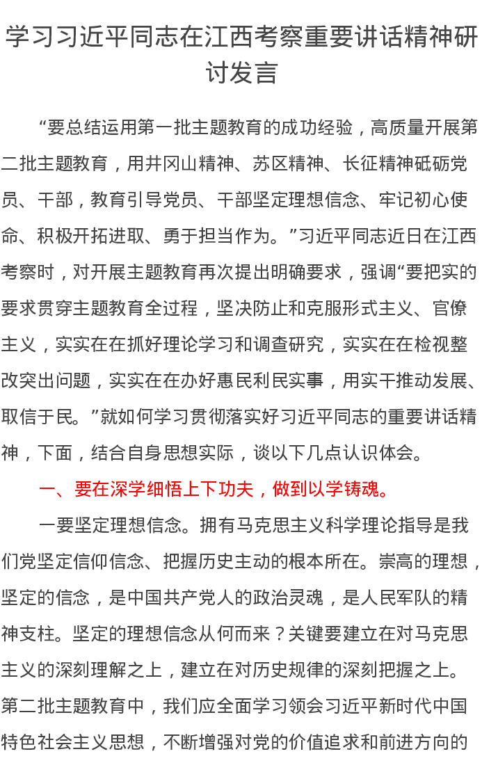学习习近平总书记在江西考察重要讲话精神研讨发言