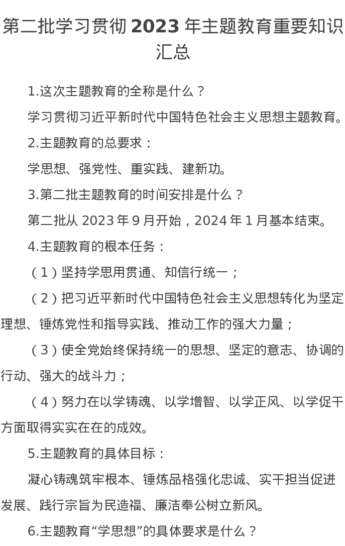第二批学习贯彻2023年主题教育重要知识汇总(特色社会主义思想)