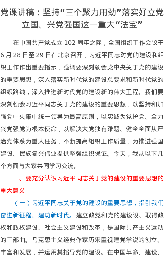 党课讲稿:坚持“三个聚力用劲”落实好立党立国、兴党强国这一重大“法宝”