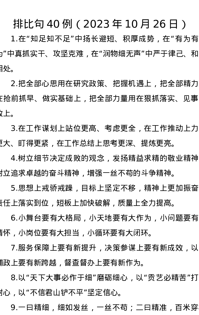 排比句40例(2023年10月26日)