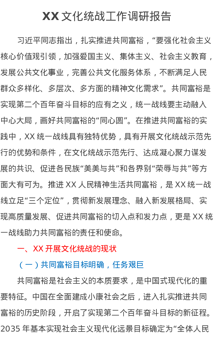 XX文化统战工作调研报告