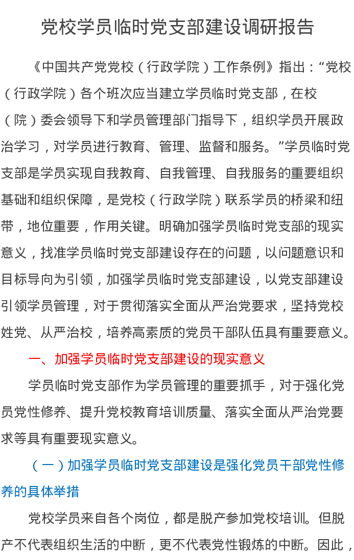 党校学员临时党支部建设调研报告