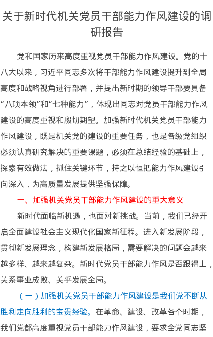 关于新时代机关党员干部能力作风建设的调研报告