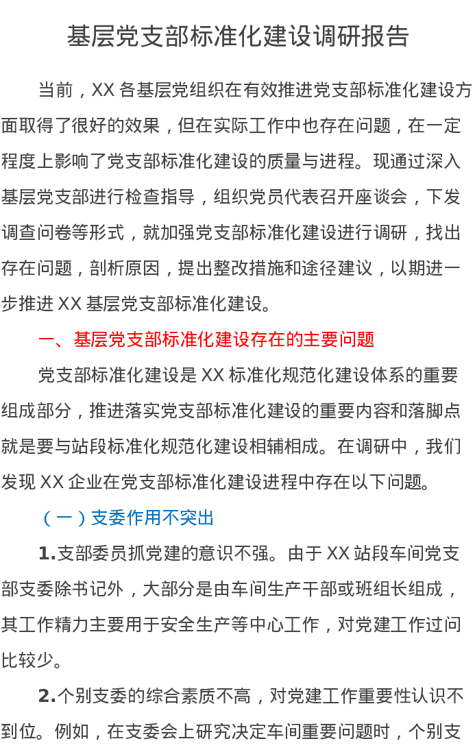 基层党支部标准化建设调研报告