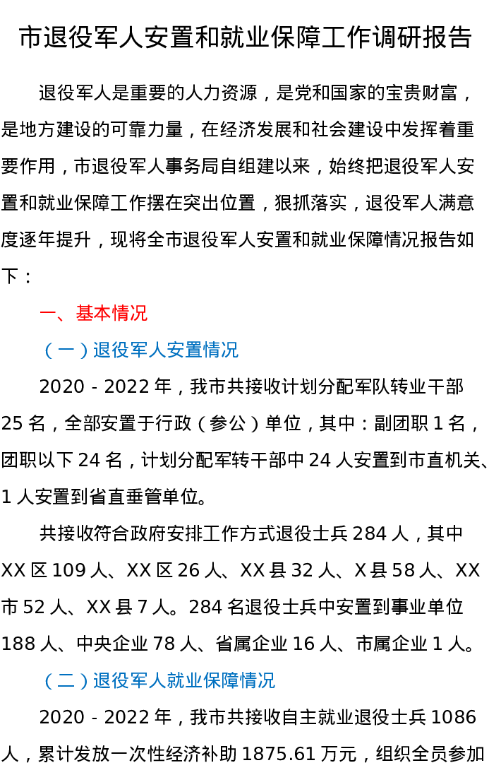 市退役军人安置和就业保障工作调研报告