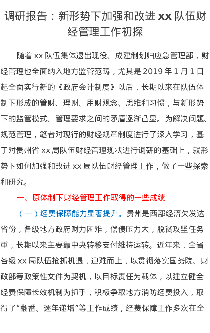 调研报告:新形势下加强和改进xx队伍财经管理工作初探