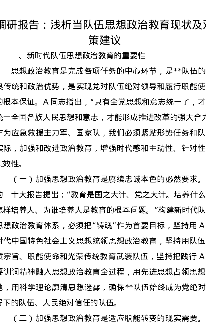 调研报告:浅析当队伍思想政治教育现状及对策建议