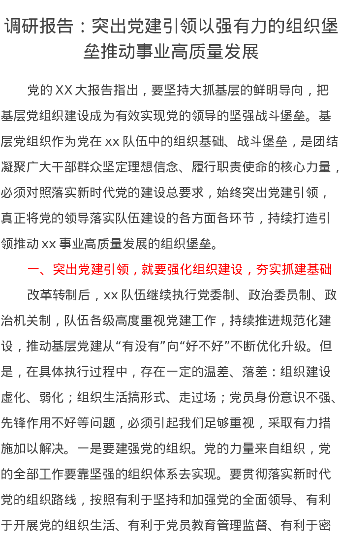 调研报告:突出党建引领以强有力的组织堡垒推动事业高质量发展