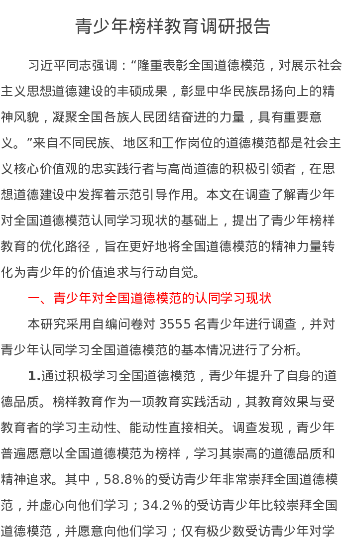 青少年榜样教育调研报告