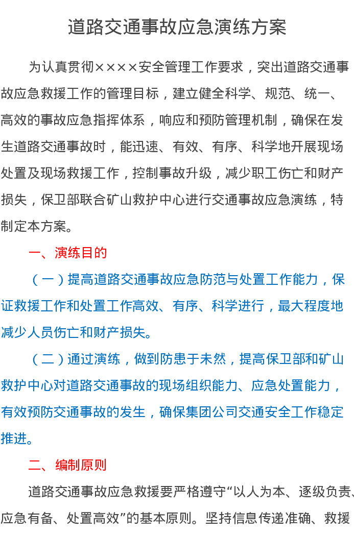 道路交通事故应急演练方案