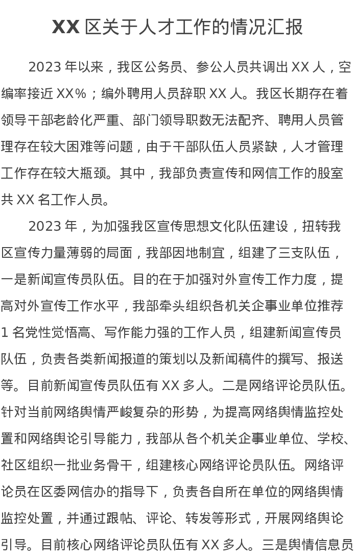 XX区关于人才工作的情况汇报