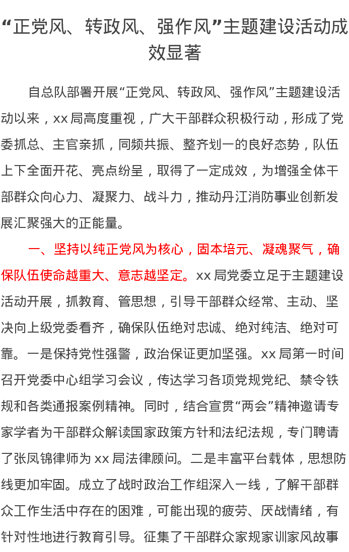 “正党风、转政风、强作风”主题建设活动成效显著汇报