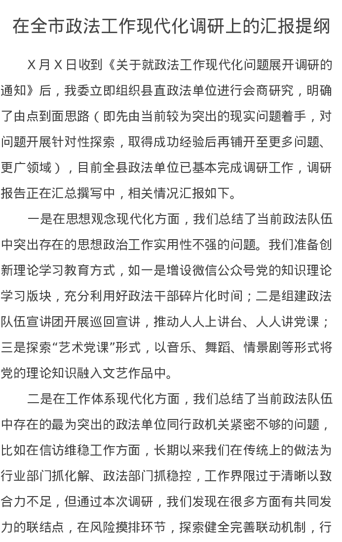 在全市政法工作现代化调研上的汇报提纲