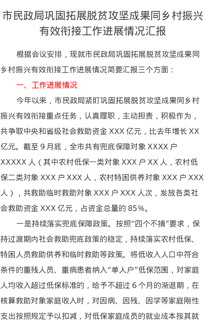 市民政局巩固拓展脱贫攻坚成果同乡村振兴有效衔接工作进展情况汇报