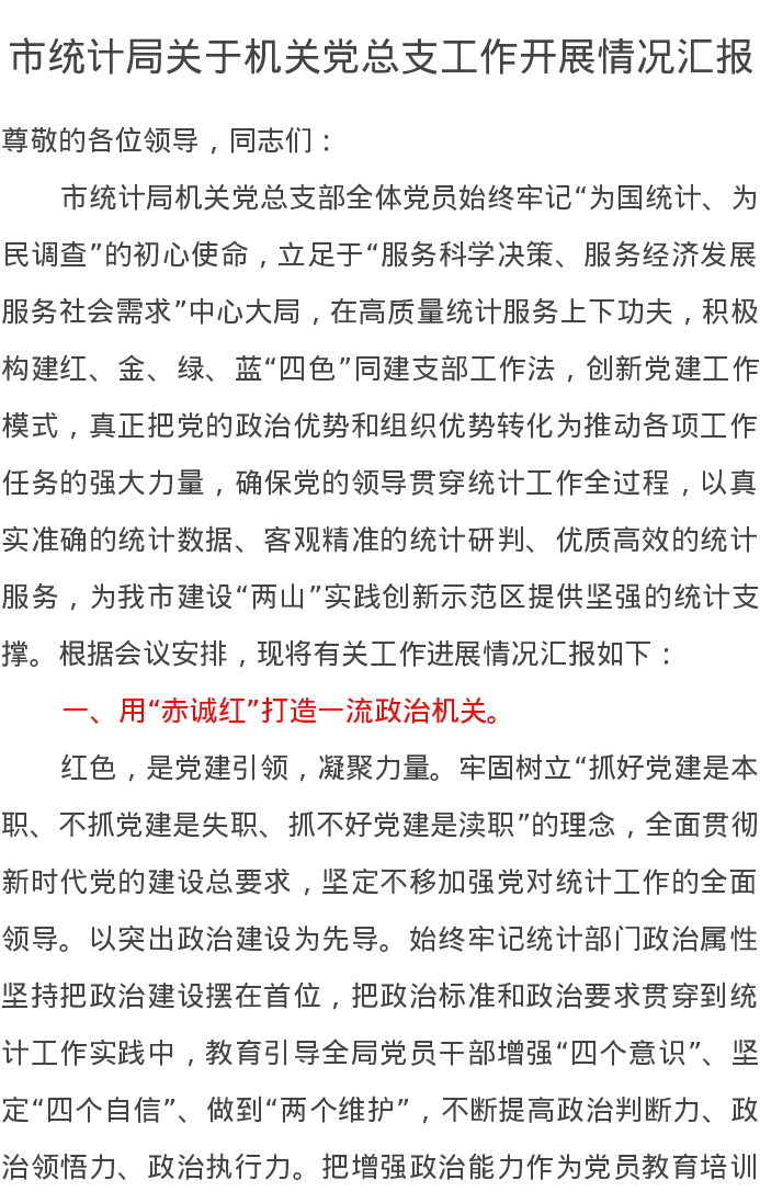 市统计局关于机关党总支工作开展情况汇报