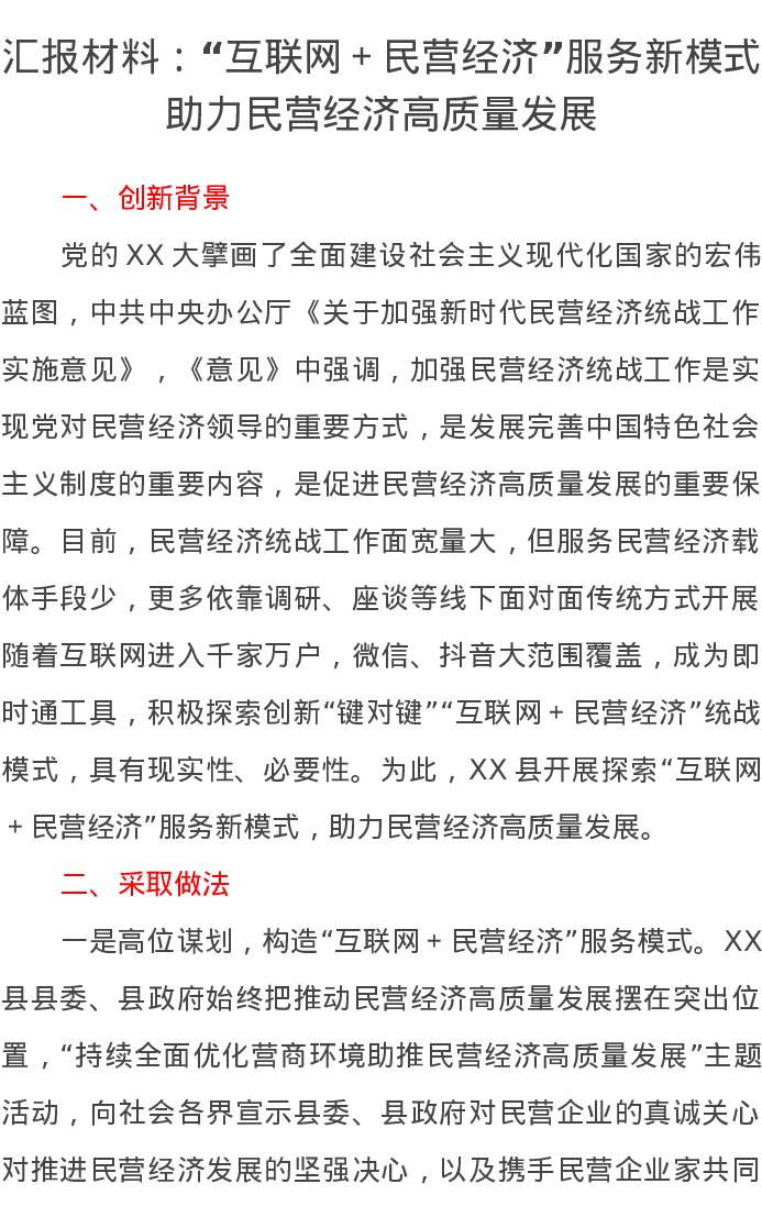 汇报材料:“互联网+民营经济”服务新模式助力民营经济高质量发展