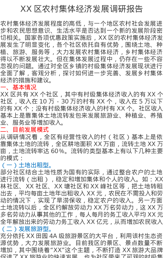 XX区农村集体经济发展调研报告