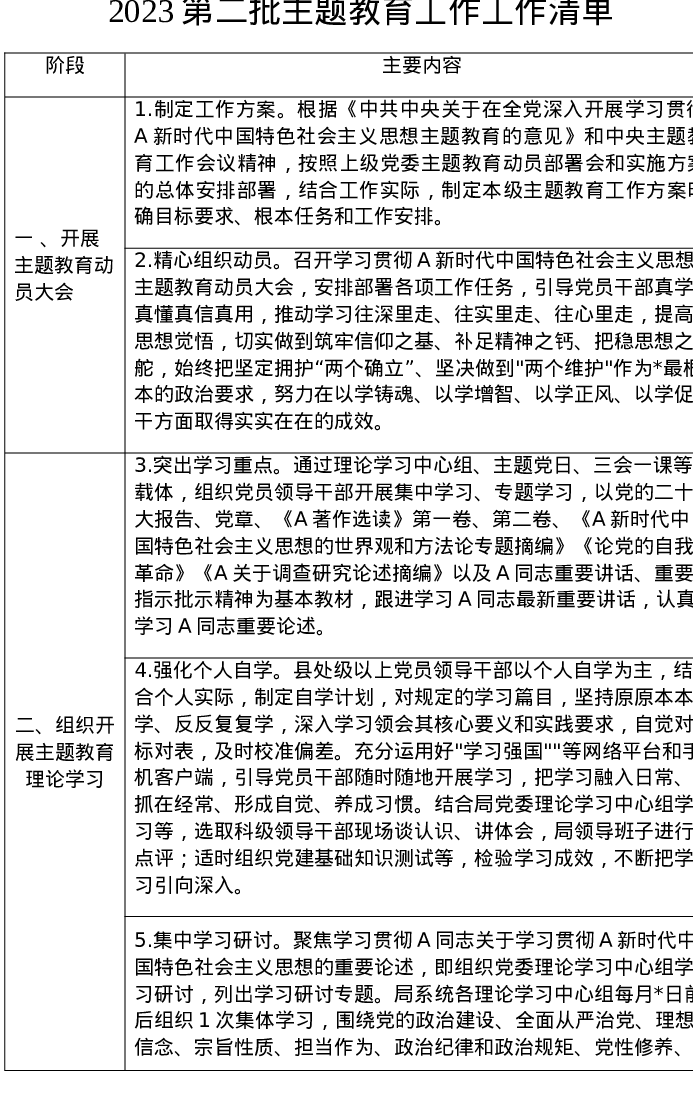 2023第二批主题教育工作工作清单(特色社会主义思想)