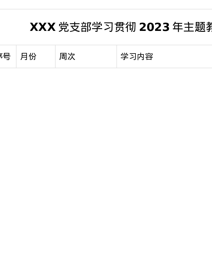 XXX党支部学习贯彻2023年第二批主题教育配发书籍学习计划