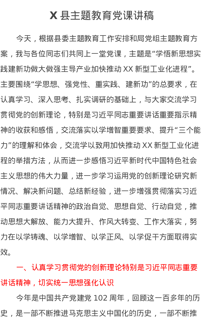 X县第二批主题教育党课讲稿