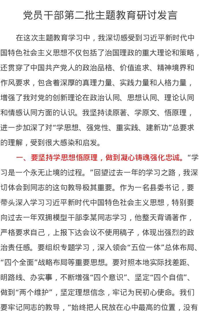 党员干部第二批主题教育研讨发言2(特色社会主义思想)