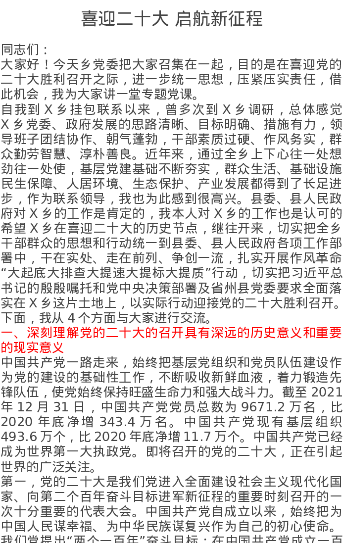党课讲稿:喜迎二十大,启航新征程(乡镇)