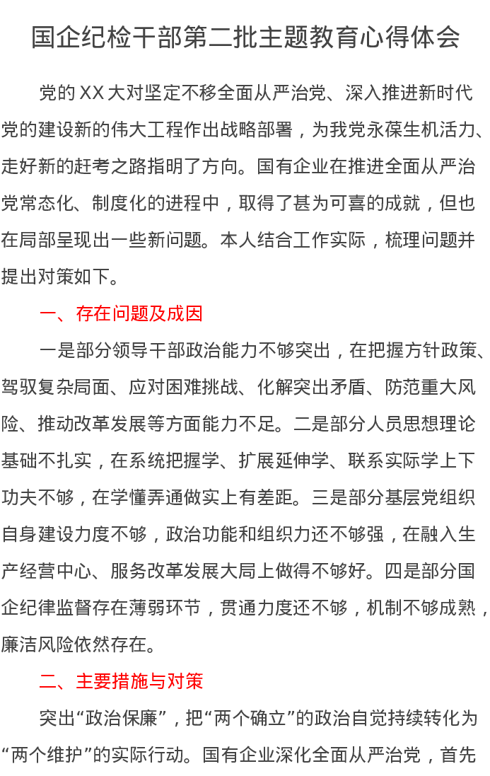 国企纪检干部第二批主题教育心得体会(特色社会主义思想)