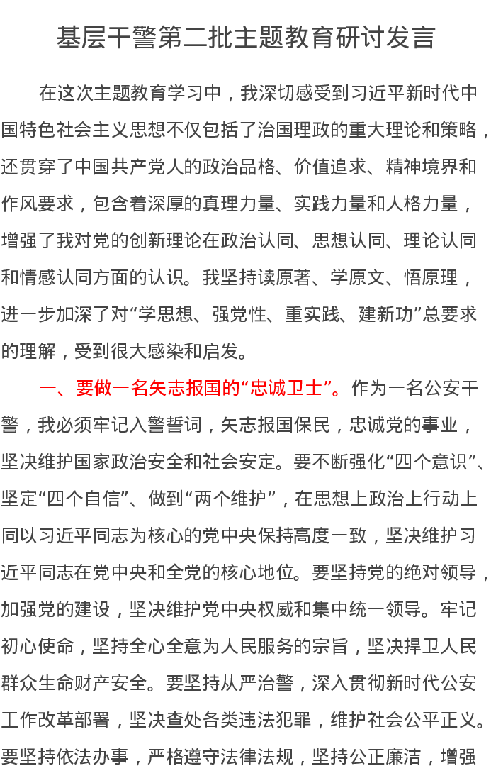 基层干警第二批主题教育研讨发言(特色社会主义思想)