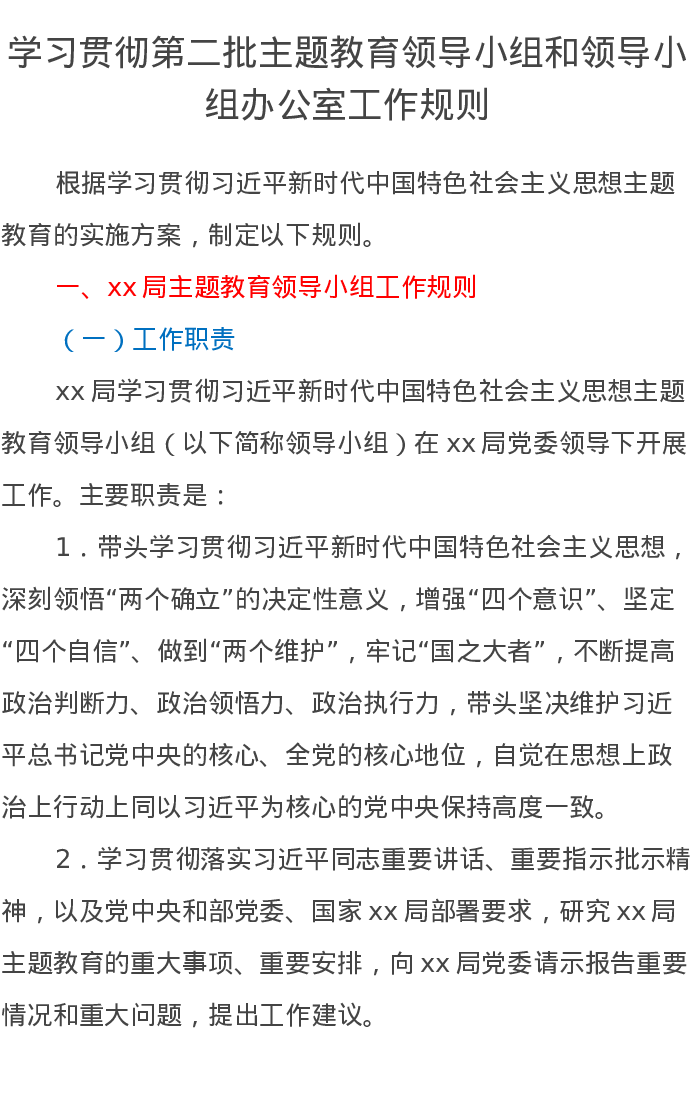 学习贯彻第二批主题教育领导小组和领导小组办公室工作规则(特色社会主义思想)