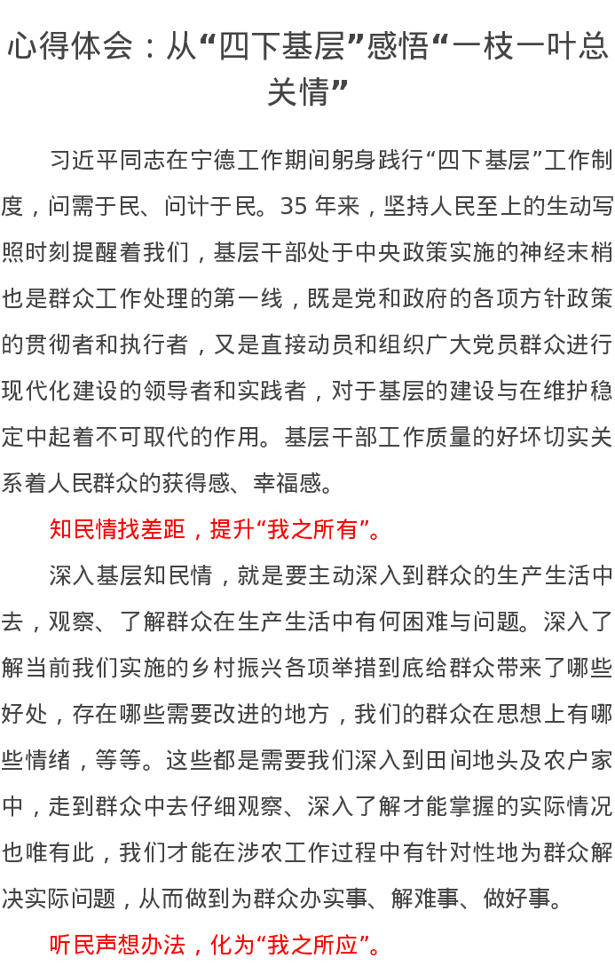 心得体会:从“四下基层”感悟“一枝一叶总关情”