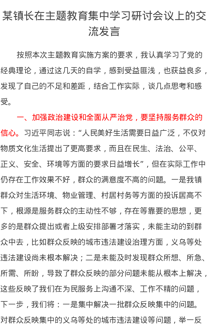某镇长在第二批主题教育集中学习研讨会议上的交流发言(特色社会主义思想)