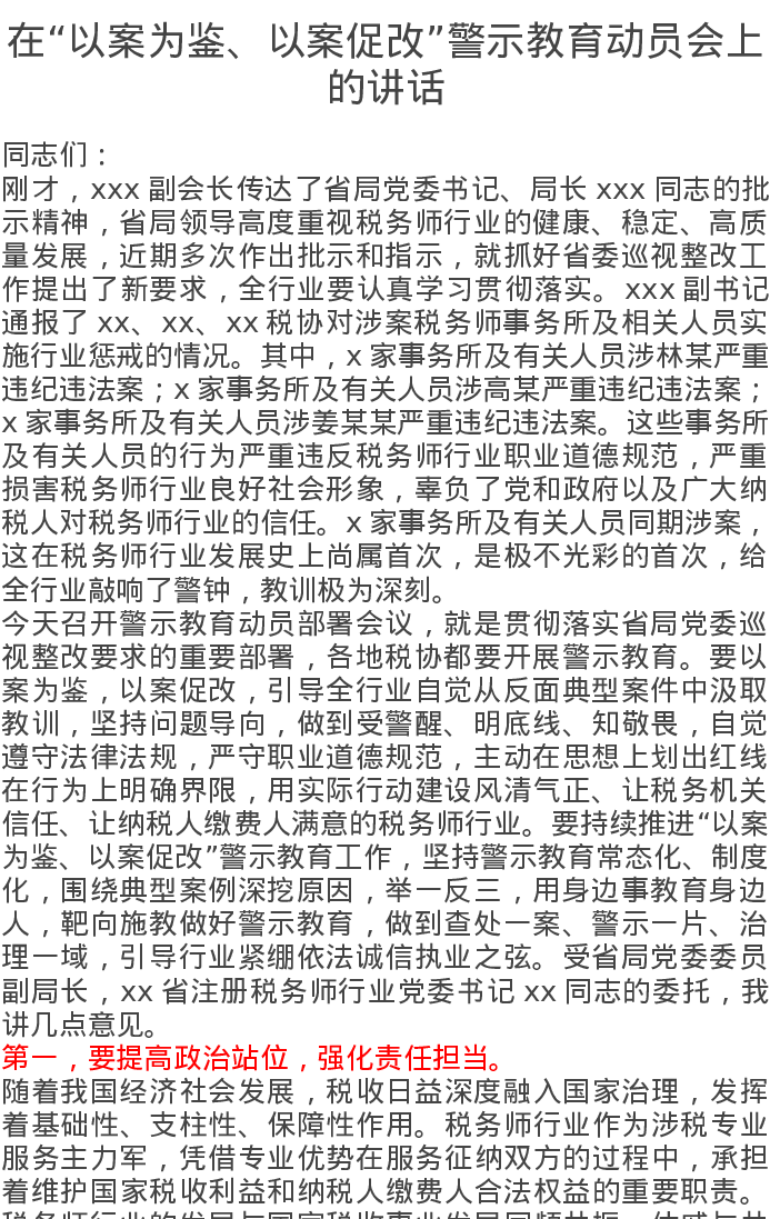 在“以案为鉴、以案促改”警示教育动员会上的讲话