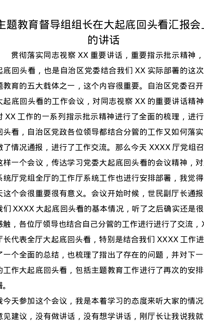 第二批主题教育督导组组长在大起底回头看汇报会上的讲话(特色社会主义思想)