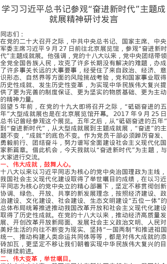 学习总书记参观“奋进新时代”主题成就展精神研讨发言